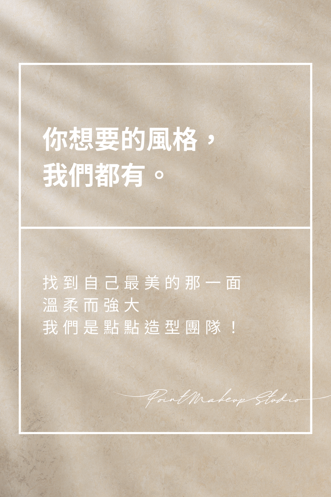 About Us關於點點 團隊介紹 提供試妝 每位造型師都提供試妝服務,讓你更了解與造型師的契合度,專業的造型建議讓你找到方向。 各區免車馬 團隊老師遍佈全台各區,皆有區域性的免車馬費服務,歡迎詢問我們。 風格多樣 平均資歷8年左右的眾多專業造型師,給予最適合你的建議,找到最適合你的風格。 重視溝通 為新娘造型前,我們十分在意溝通,傾聽新娘需求之外,更是如同你的好朋友,將你的需求放在心裡。 Price項目報價 點點造型團隊提供任何造型相關的服務,歡迎直接洽詢我們,或是在Facebook上搜尋「點點造型團隊」,由專人為您提供諮詢服務。 婚禮造型12,000起提供最專業 細心的婚禮造型服務 是你當天最棒的好朋友查看服務細項婚紗攝影造型6,500起提供國內與海外 自助婚紗攝影之 造型服務查看服務細項個人妝髮造型3,800起尾牙春酒、面試、重要聚會 形象照、商業拍攝等等 任何場合之彩妝造型服務查看服務細項造型相關教學4,500起造型師菁英系列進修班 1對1基礎彩妝教學 有興趣歡迎詢問查看服務細項 She says...他們怎麼說 到婚禮那天,老師畫的妝,能蓋住我的曬斑,卻不會感到厚重,看起來非常自然,三套造型呈現了不同風格,親朋好友看到都讚不絕口,連先生的男性朋友們都一直稱讚。選Iris老師絕對不會錯!大力推薦😂(點我看更多內容) by 點點新娘-鍾小姐 小晴老師在前期溝通的時候也用很多範例圖跟我說明妝造的細節、對焦我的個人需求和在意的重點,當天還提早抵達儀式地點🥹(早上四點多) 風格上也很符合我所需要的清淡不厚重、自然簡單的感覺,整體來說是個話不多但手速快動作溫柔、安全感蠻足夠的老師!(點我看更多內容) by 點點新娘-匿名鬼鬼 經過Iris的巧手真的化出我心中想要的樣子,覺得自己變超美🥰老師不止化妝仔細、手法也很溫柔,還有超多漂亮的髮飾耳環可以做搭配,穿禮服的動作也很快速,第一套白紗的盤髮超美好有氣質,瀏海好韓系好喜歡😍(點我看更多內容) by 點點新娘-楊小姐 老師是根據她看到禮服的第一眼就說她想的是這樣的編髮,我看了也非常喜歡!飾品的搭配也會給你好幾種選擇!由於老師的動作非常快,咻咻咻就完成換髮型!如果你還在找新秘的話,點點造型的Joyce老師很推薦喔!(點我看更多內容) by 點點新娘-余小姐 把我畫的超韓超美的Iris~無時無刻都會注意我的造型,每拍完幾張照片就會趕快來調整髮型及裝容,每次移動的時候看到快被禮服絆倒的我Iris都會馬上在旁邊協助🤣 要換造型的時候也會討論大概想要搭甚麼款式的髮飾或配件,完完全全滿足我的公主夢💖(點我看更多內容) by 點點新娘-Elena Blog點點專欄搶先看